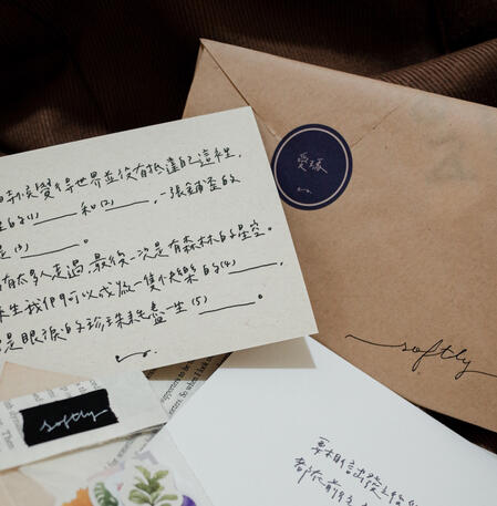 蒐集各式手作素材,偶有手稿、明信片和其他。